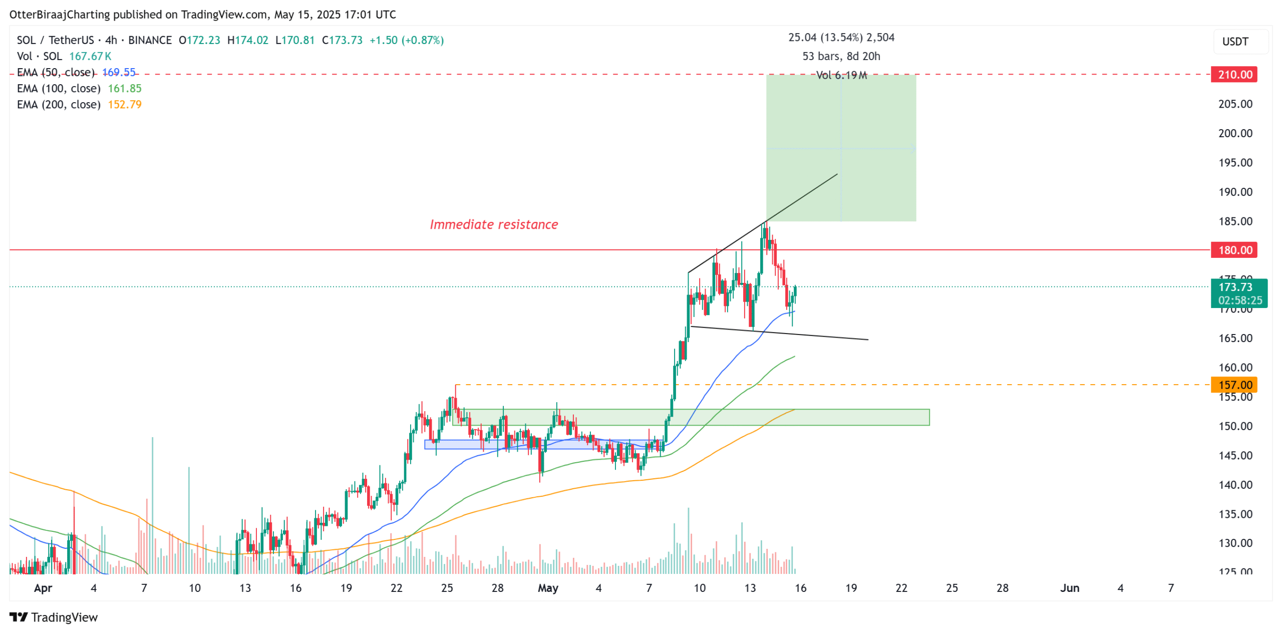 If momentum is sustained, the next target will be $210, representing a 21% rally from current prices. A break above $200 would also trigger a psychological level that could attract further buying pressure.