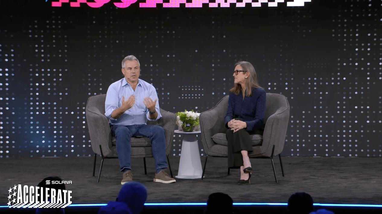 “I think ETFs are an important stepping stone because, you know, wallets seem so complicated, so much friction for consumers, they just wanna push a button,” Wood said at the Solana Accelerate event in New York on May 23.